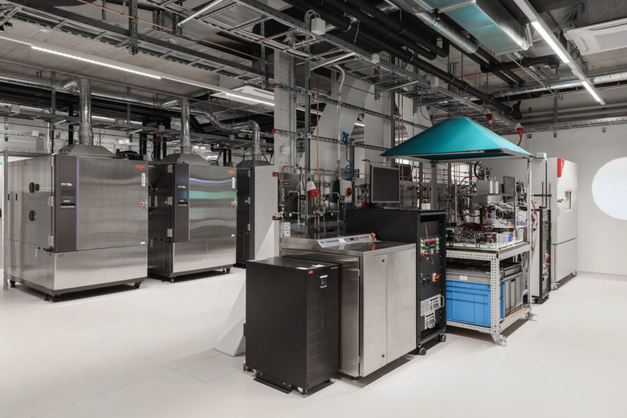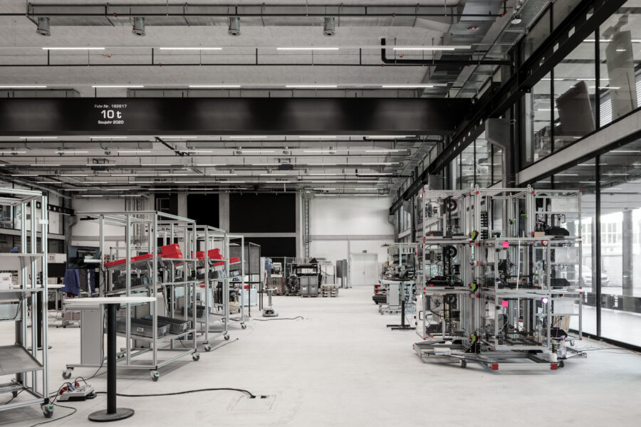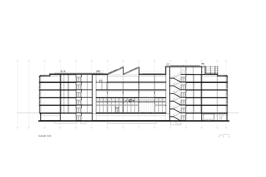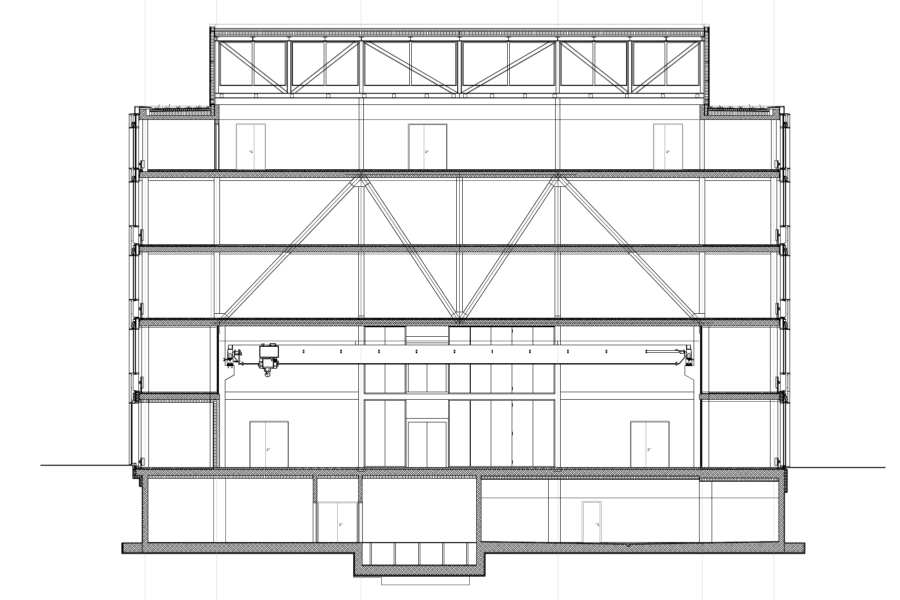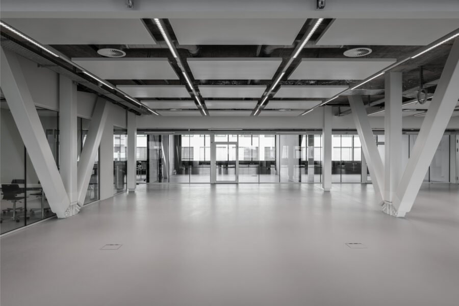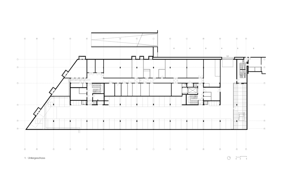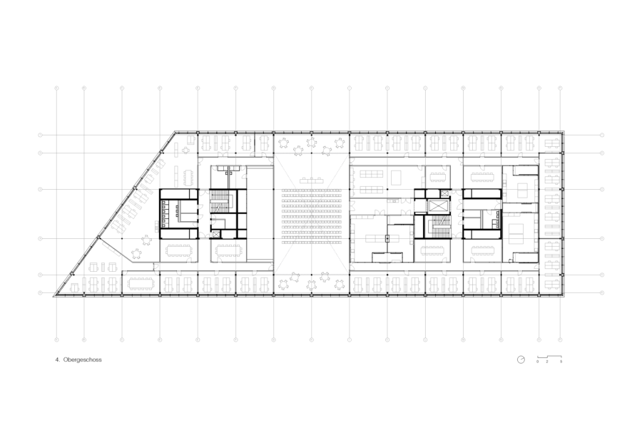 Die programmatische Mitte des Gebäudes bildet die zweigeschossige Halle im Erdgeschoss. Sie ist das Zentrum des halböffentlichen Stadtparterres des Innovationsparks. Durch seine hohe Transparenz und den gut auffindbaren Eingängen, ist es die verknüpfende Ebene zum urbanen gesellschaftlichen Lebens in Biel/Bienne.