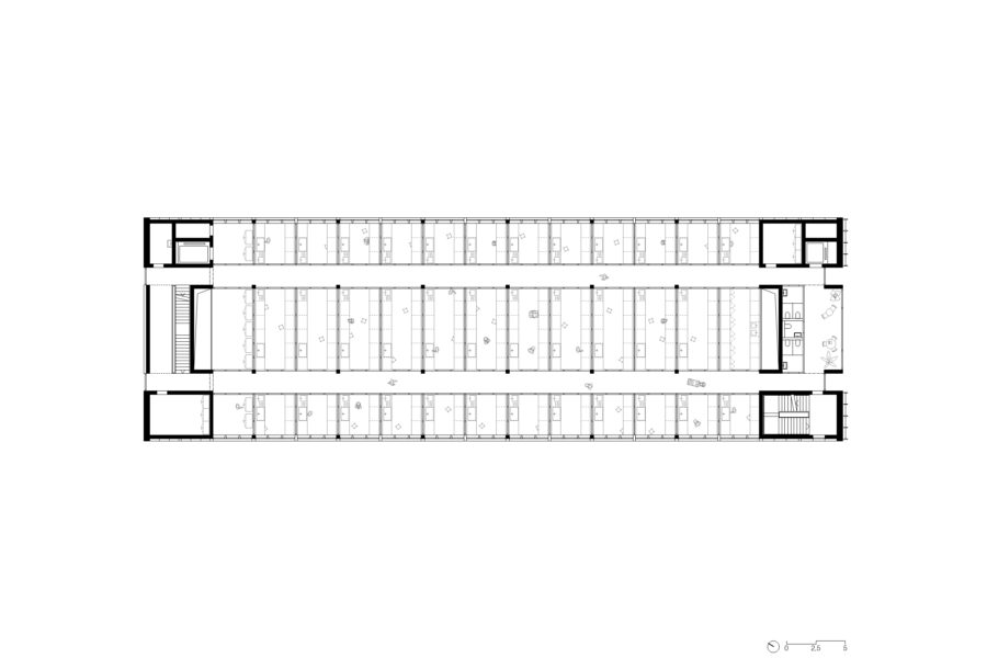 In unmittelbarer Nähe zum Kantonsspital St. Gallen entsteht ein neues Laborzentrum, das die diagnostischen Prozesse des ZLM räumlich und organisatorisch bündelt. Der dreischiffige Baukörper trennt Personen- und Logistikflüsse klar, organisiert Diagnostik und Verwaltung auf kurzen Wegen und schafft eindeutige Adressen für Mitarbeitende, Besuchende und Lieferverkehr. Eine flexible Struktur und eine energieaktive Fassade sichern langfristige Anpassungsfähigkeit und ermöglichen die spätere Erweiterung des Gebäudes.